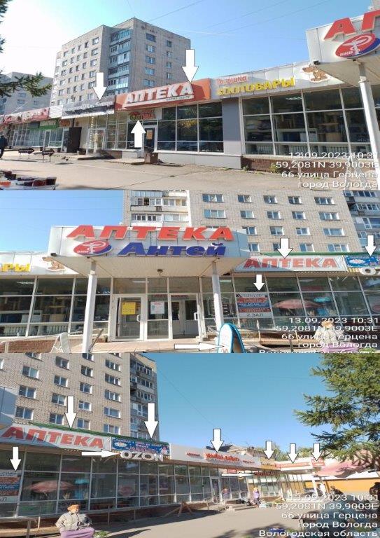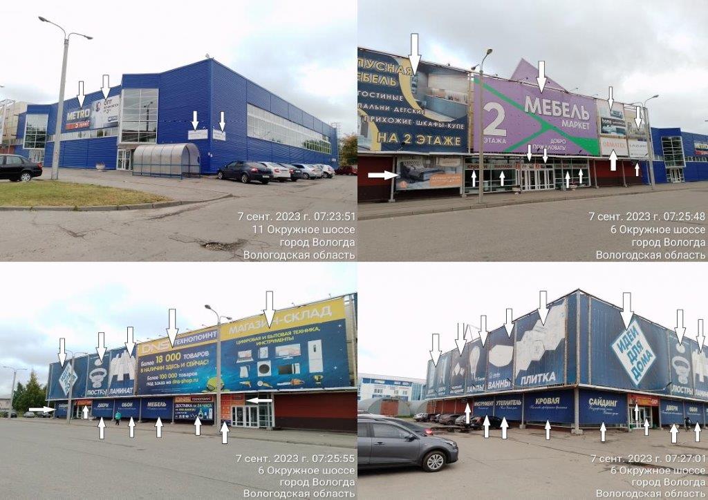 Список уведомлений о нарушении размещения информационных конструкций: